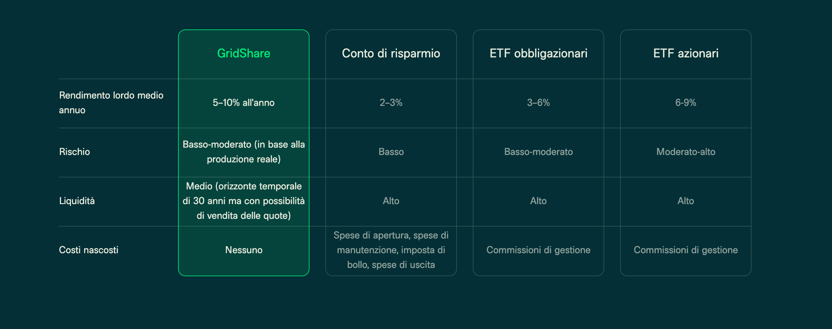 Simula in maniera rapida e trasparente i ritorni economici di un investimento GridShare